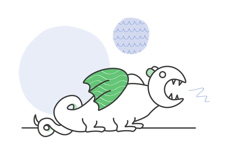 Illustration des Lindwurms, der berühmten Drachenfigur und Sehenswürdigkeit in Klagenfurt, mit grünem Flügel und aufgerissenem Maul​